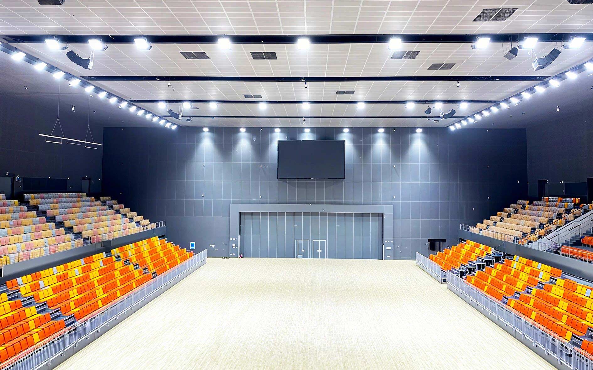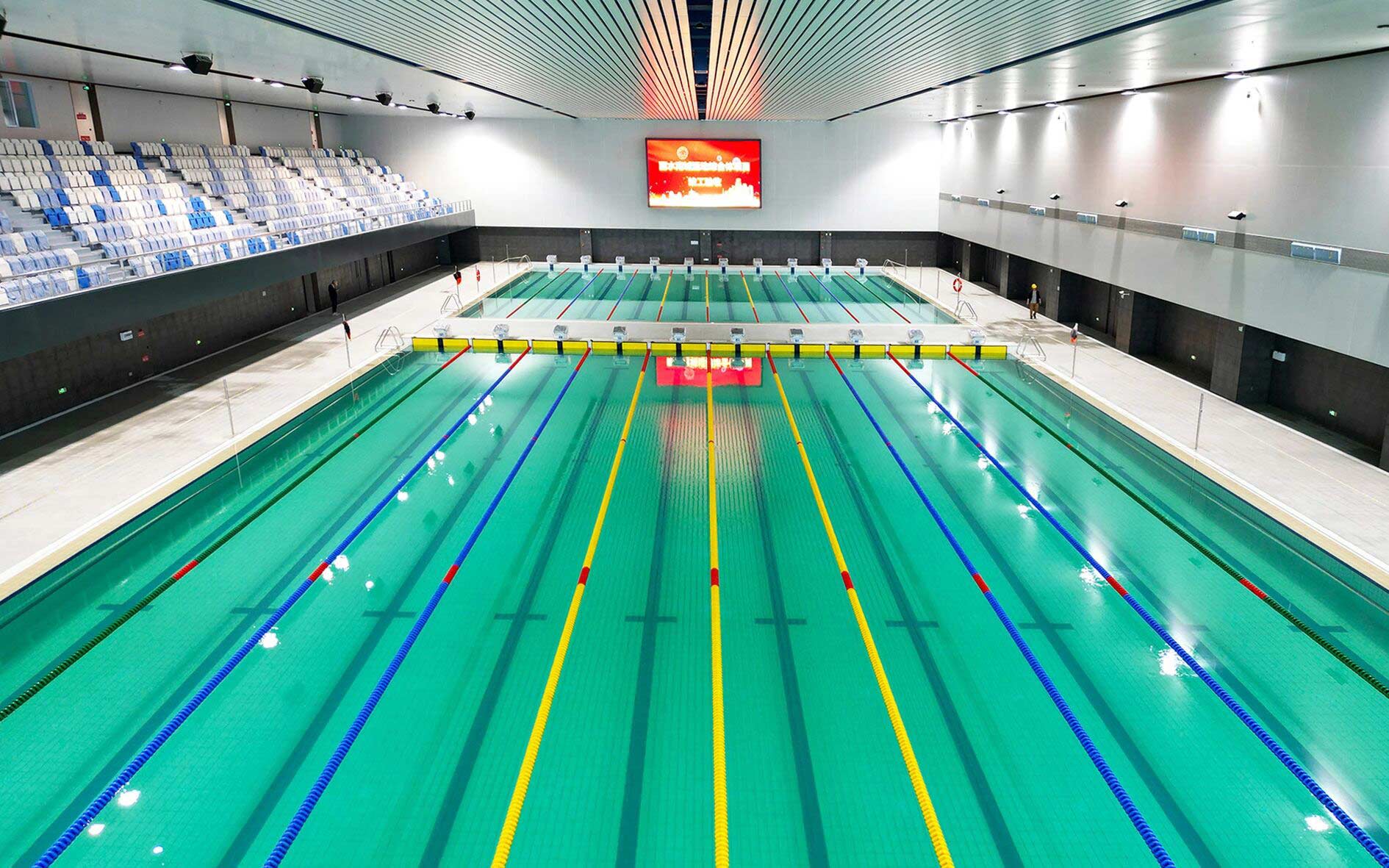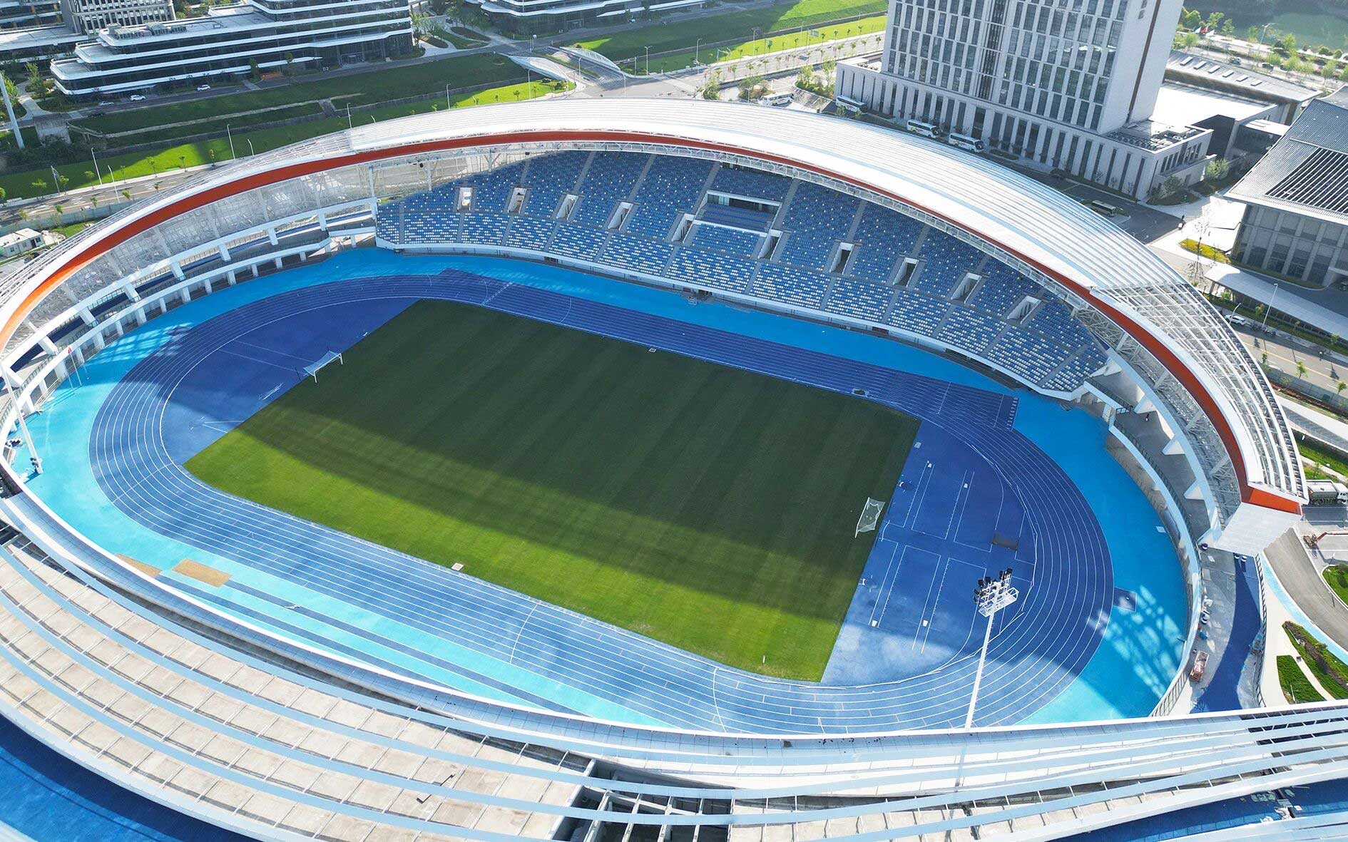 作為項(xiàng)目核心建設(shè)力量金陵體育承接了其中眾多關(guān)鍵的體育工藝內(nèi)容,覆蓋所有室內(nèi)場(chǎng)館、室外球場(chǎng)及體育場(chǎng)的全流程體育工藝工程。從場(chǎng)地?cái)U(kuò)聲和照明系統(tǒng)、LED大屏,到體育設(shè)施系統(tǒng)、各類體育器材、看臺(tái)座椅,再到運(yùn)動(dòng)草坪、跑道鋪設(shè)、泳池水處理、恒溫除濕系統(tǒng)等,每一個(gè)細(xì)節(jié)都傾注了專業(yè)匠心。