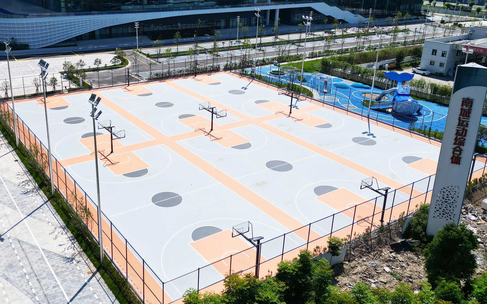 從高空俯瞰,這座 “五合一” 綜合性單體體育設(shè)施極具辨識(shí)度,囊括體育場(chǎng)、體育館、游泳館、輪滑館及網(wǎng)球館,集多元運(yùn)動(dòng)功能于一體,為當(dāng)?shù)厝罕姶蛟炝艘徽臼竭\(yùn)動(dòng)休閑新地標(biāo)。
