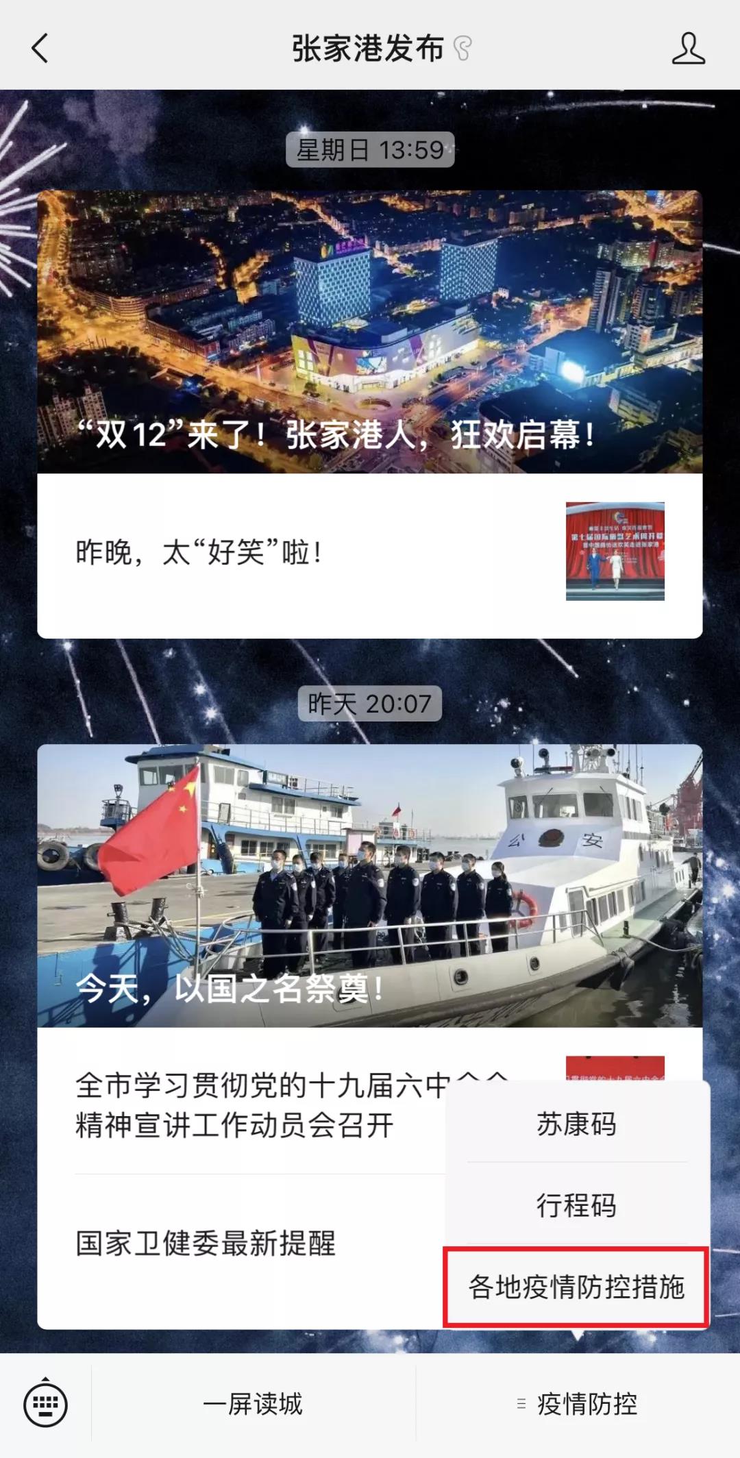 最近要出門,不知道出發(fā)地、目的地都有什么疫情防控政策措施?別著急,兩步教你查詢!在“張家港發(fā)布”微信菜單欄打開“國務(wù)院客戶端”小程序,進(jìn)入后搜索“各地疫情防控政策措施”,即可搜索查詢相關(guān)信息!